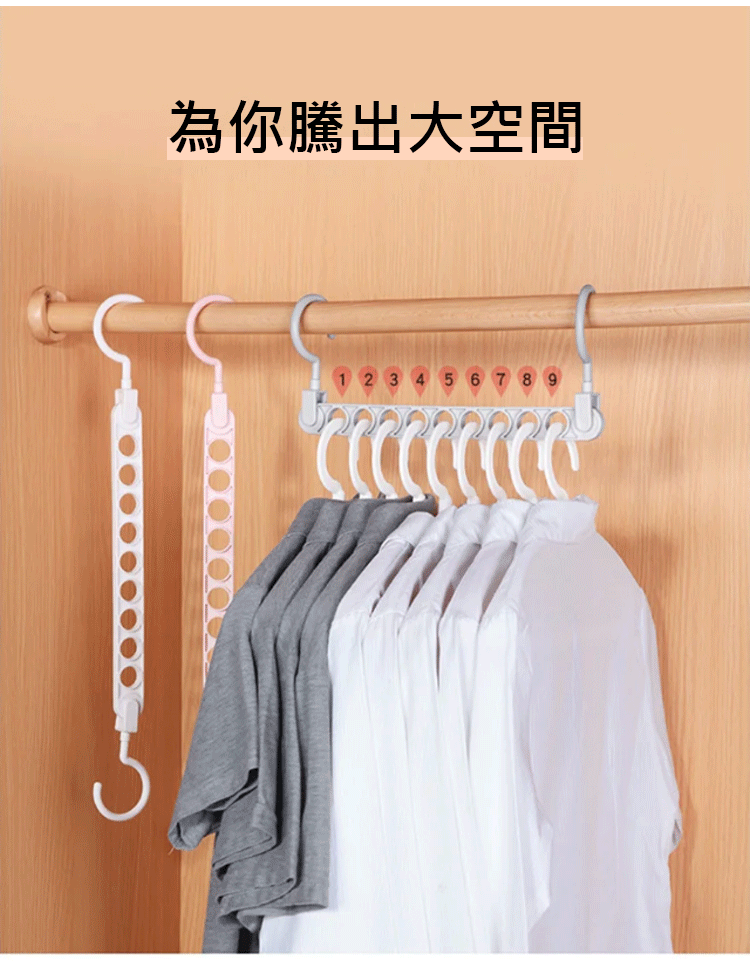 【節省衣櫃空間】九孔魔術衣架