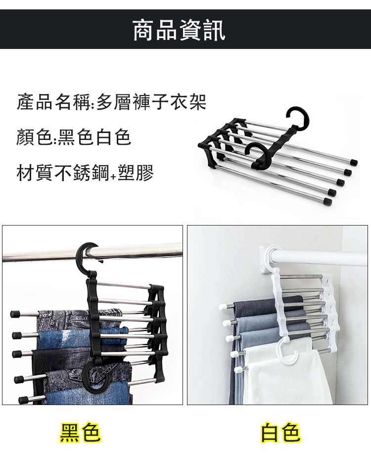 【多層褲子衣架】 多層褲掛多功能家用無痕整理收納架衣櫃伸縮褲架褲夾